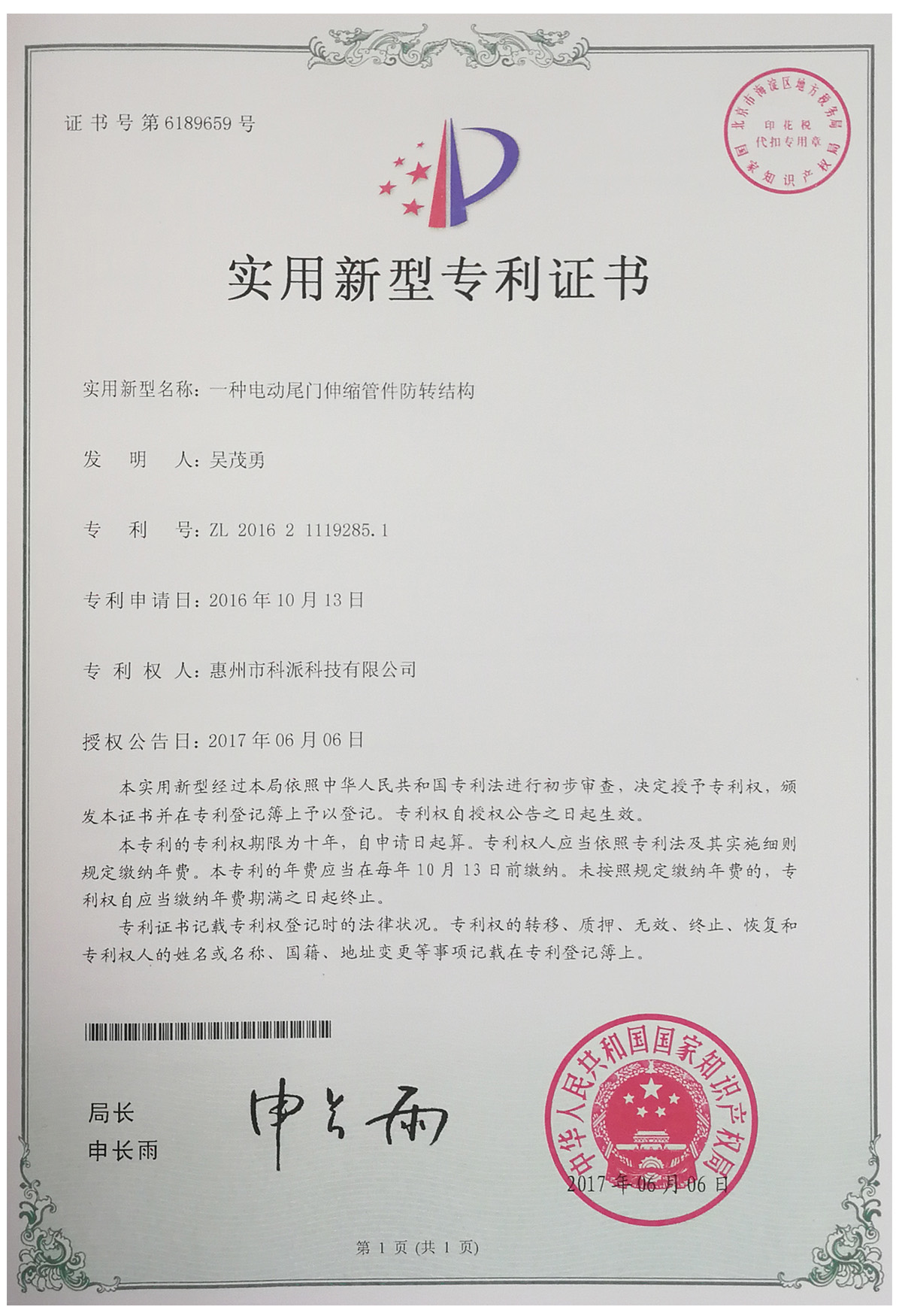 专利证书