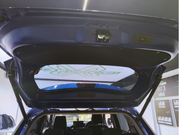 长按尾门上的加装开关,听到长响2声、短响2声后松开开关,语音开关开和关生效。