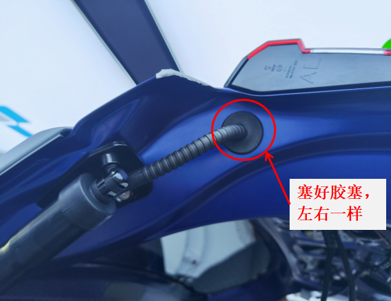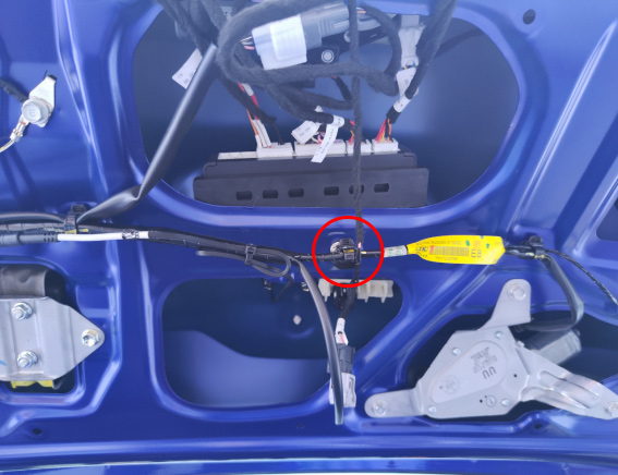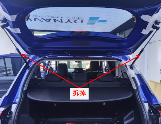 10、安装电动撑杆,L在左,R在右(撑杆编号的第一个字母),撑杆带线的一端安装在尾门,左右一样。