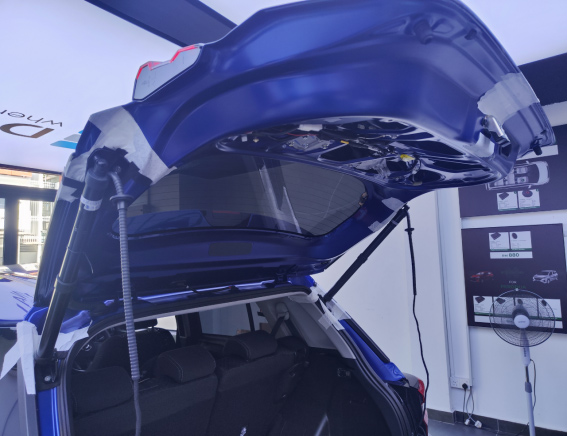 长按尾门上的加装开关,听到短响3声后松开开关,尾门开门加速生效。