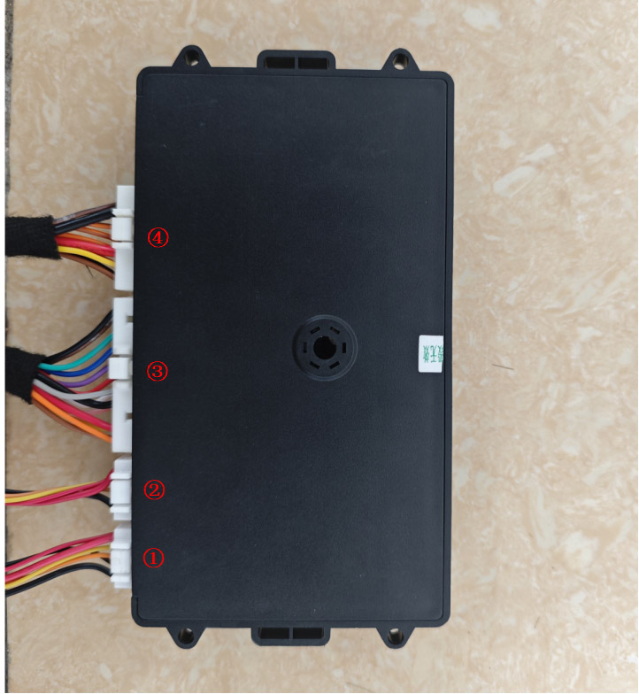 28、将撑杆线①②,锁信号线③,电源线④按顺序插入控制盒。