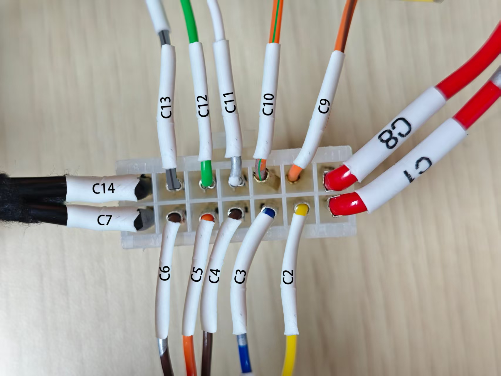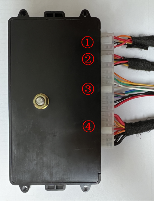 22、将左右撑杆线①②,锁信号线③,电源线④按顺序插入控制盒。