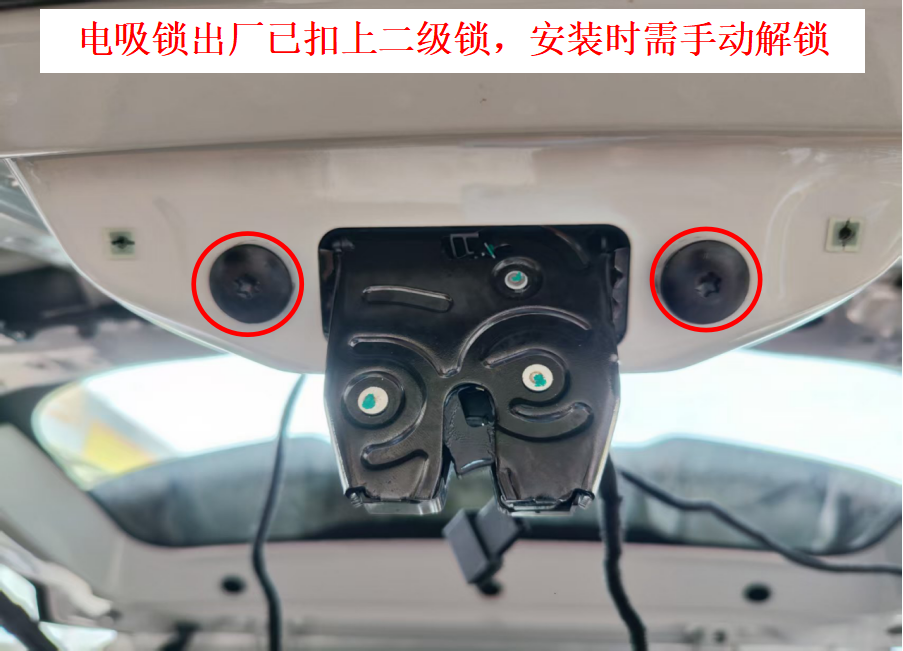 13、装好我司电吸锁,使用原车螺钉,并套上原车锁胶套。