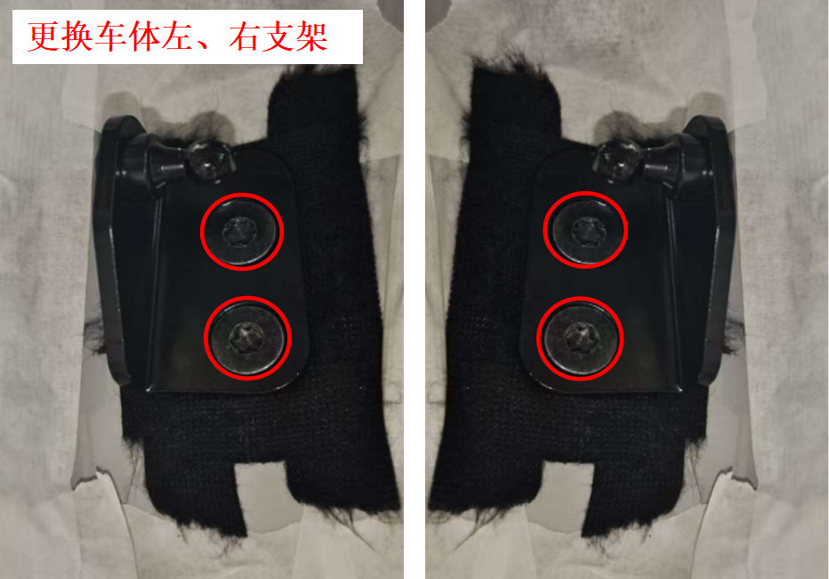 6、更换我司车体支架,使用原车螺钉(注意球头方向)。