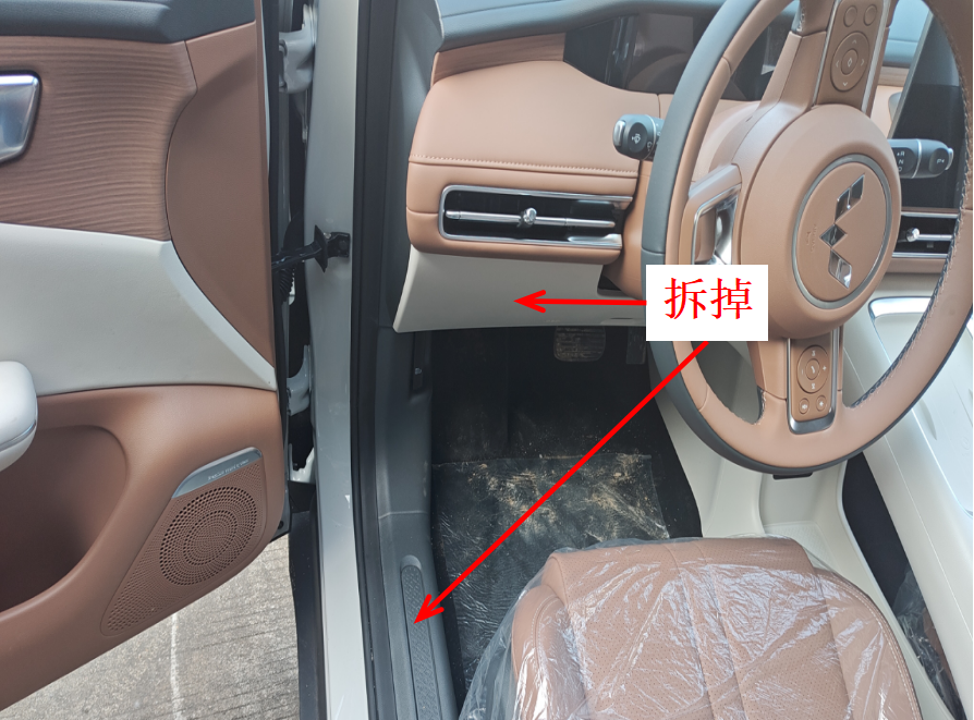 1、拆掉驾驶室保险盒饰板和左侧门槛饰板。