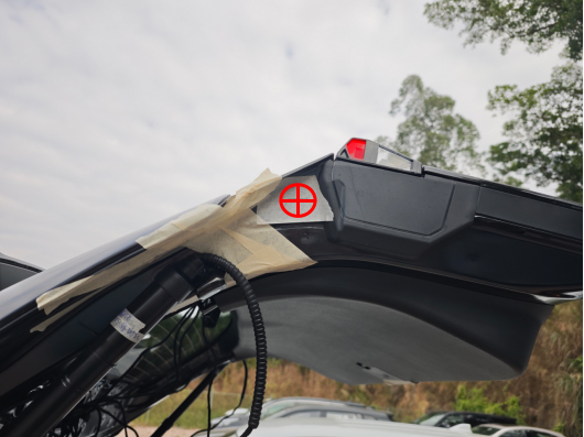 长按尾门上的加装开关,听到长响1声、短响1声后松开开关,刹车力增加生效。