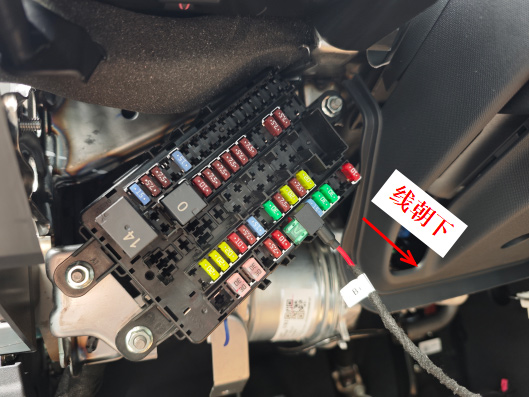 22、将电源线取电器按图示插入保险盒,注意线朝向。
