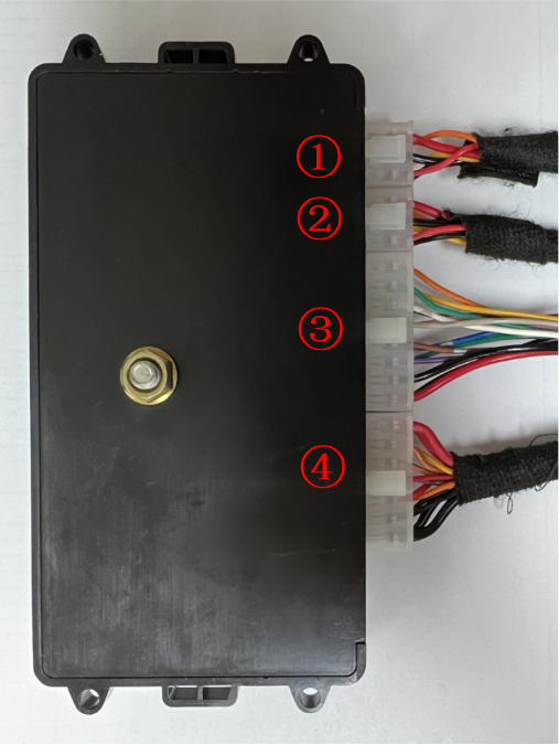 24、将撑杆线①②,锁信号线③,电源线④按顺序插入控制盒。