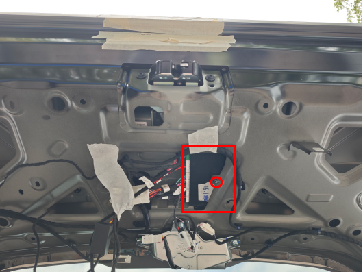 23、取下尾门图示位置原车线扣,安装控制盒。
