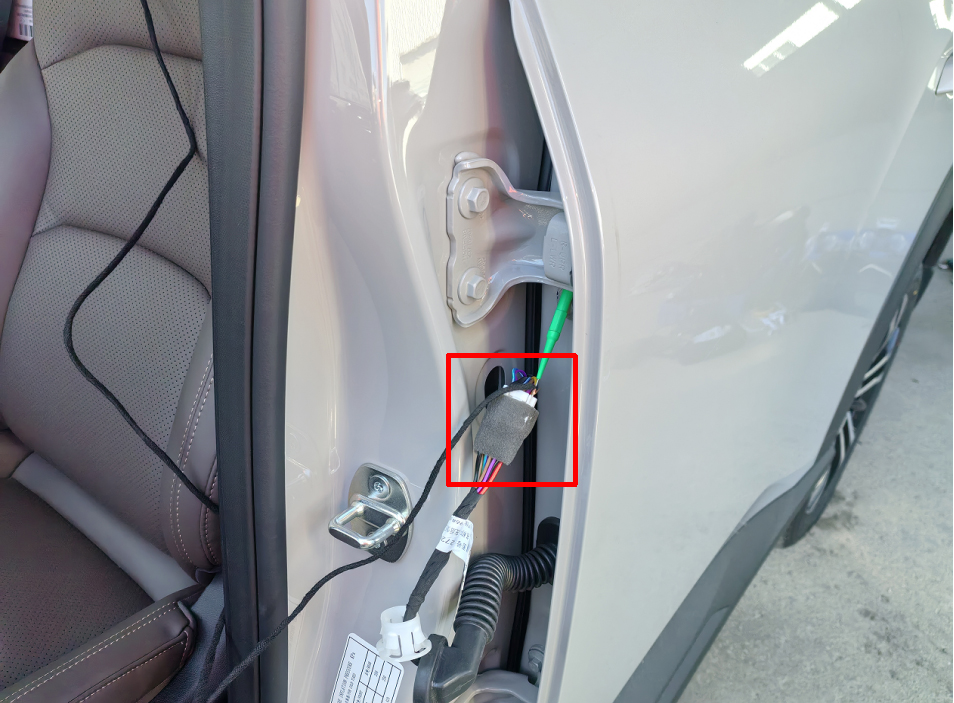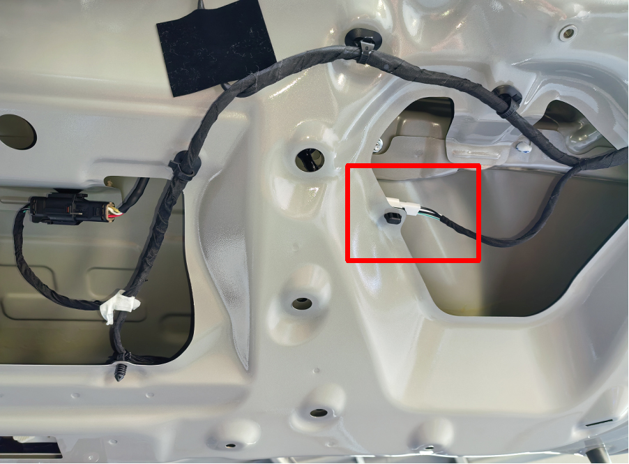 9、穿左右撑杆线到尾门,塞好胶塞。