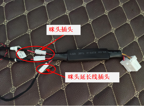 8、根据控制盒的安装位置,布咪头延长线到控制盒附近后,驾驶室咪头,对插好咪头延长线。